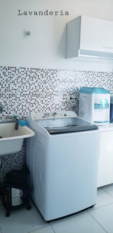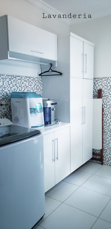 Area de serviço com dispensa para guarda de produtos de limpeza entre outros.