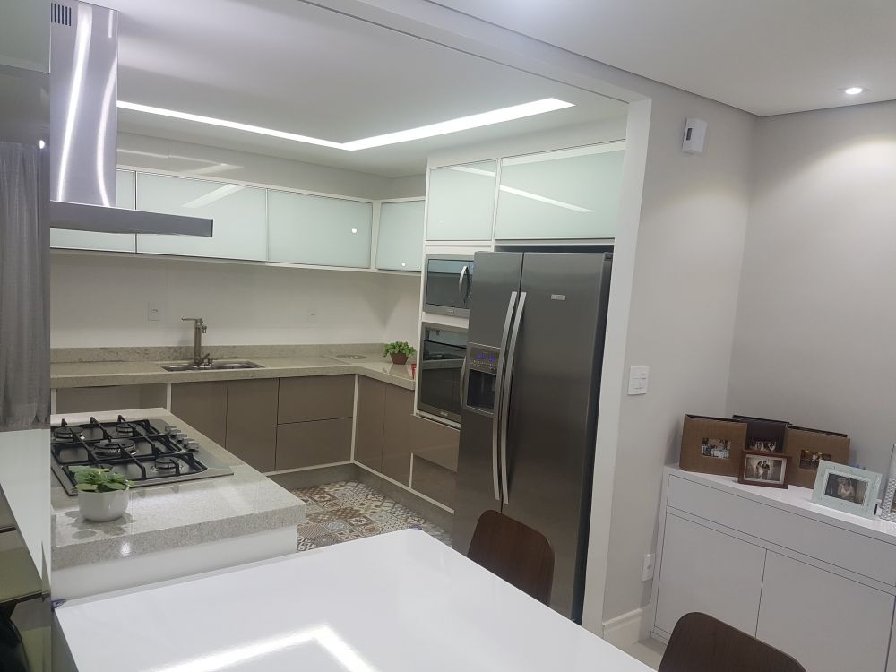 Cozinha planejada 100% com sistema CLICK SEM PUXADORES.